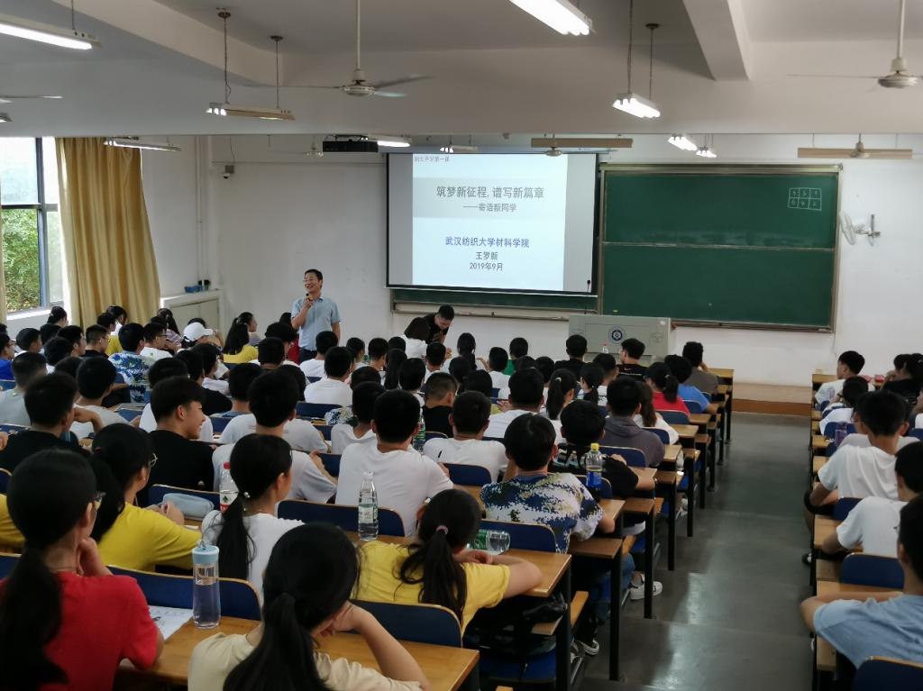 2019年9月10日下午3点,英国正版365官方网站院长王罗新教授为新生上“第一堂专业课”。王院长以“筑梦新征程,谱写新篇章”为题,围绕“材料专业值不值得学”、“大学应该怎么过”两个方面展开了生动的阐述。王院长将材料专业的历史发展脉络及今后的发展前景,向在座新生娓娓道来,把“材料”的丰富内涵阐述得淋漓尽致。接着,王院长就“态度决定一切”,寄语全体材料新生做好人生规划,处理好学习、生活、人际交往等方面的关系,不断锤炼自身品格,夯实基础,做新时代合格的大学生!