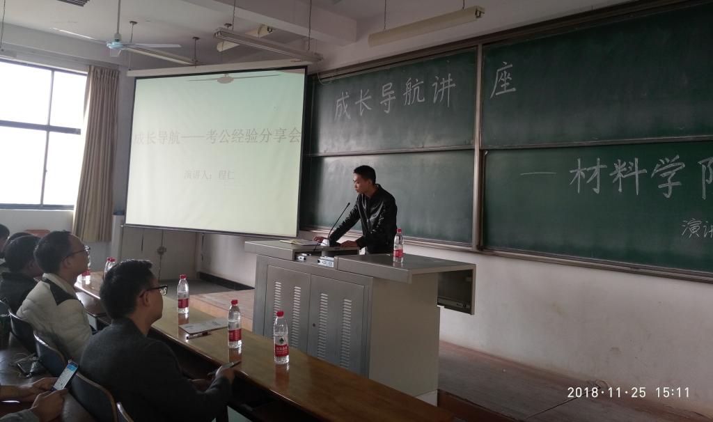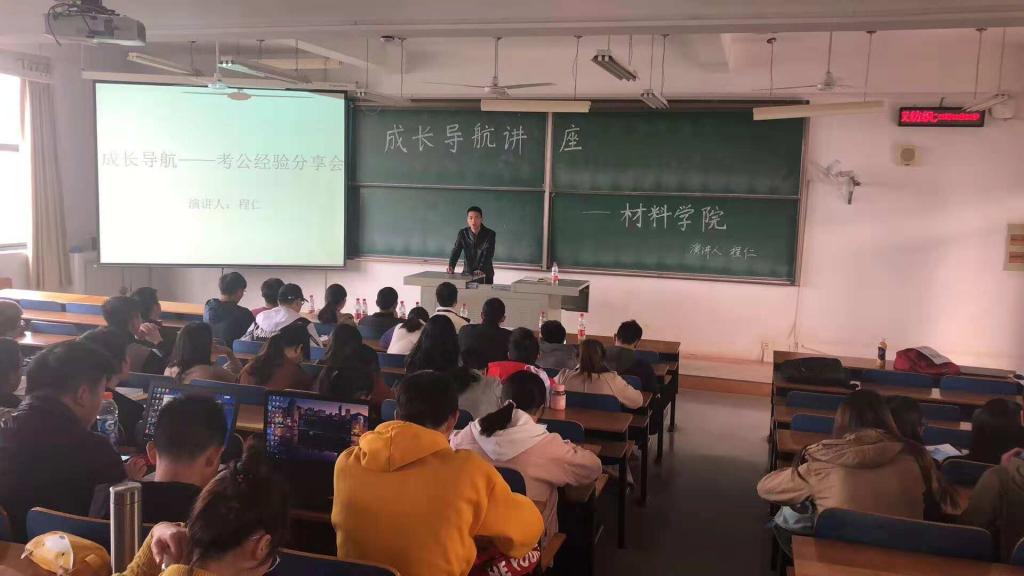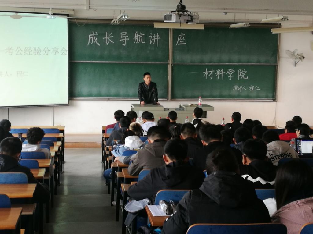 11月25日下午15:00,武汉纺织大学学工部(团委)主办,英国正版365官方网站承办的成长导航讲座在03-416教室举行,本次讲座特邀湖北省黄石大冶市还地桥镇人民政府公务员、英国正版365官方网站2013级优秀毕业生程仁,近两百名同学现场聆听了本次讲座。