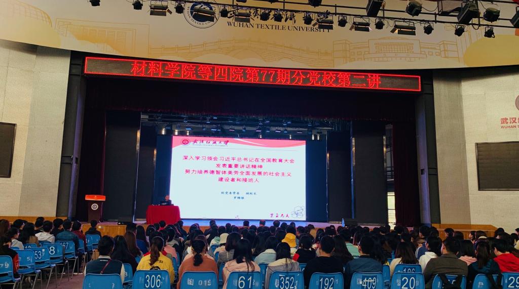 3月28日,纺织学院、机械学院、英国正版365官方网站、管理学院等四个学院党校联合开办的第77期分党校第二讲在大活演播厅举行。本次党课由校党委常委、副校长罗锦银教授主讲,参加此次党课的有英国正版365官方网站、机械学院、纺织学院、管理学院全体积极分子,学校机关党委财务处党支部、资产与实验室管理处党支部、离退休工作处党支部、校友工作办公室党支部、采购与招标管理中心党支部和资产经营有限责任公司党支部党员。党课由英国正版365官方网站党委副书记秦梦主持。