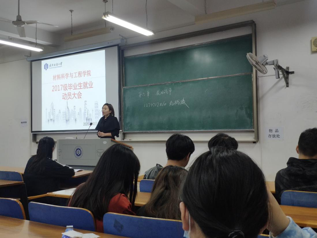 随后由王鑫老师进行分享,从几个方面对应届毕业生进行动员。一方面,帮同学们更加深入了解有关选调生、三支一扶、公务员及省考等方面信息,同时还提供了参军入伍方面的信息;另一方面,王鑫老师和同学们分享了找工作的技巧,并对大家推荐了微信公众号。接下来,侯书记进行讲话,继续就毕业生就业工作进行了详细介绍,与同学们进一步分享找工作技巧,并详细提供考研相关信息。