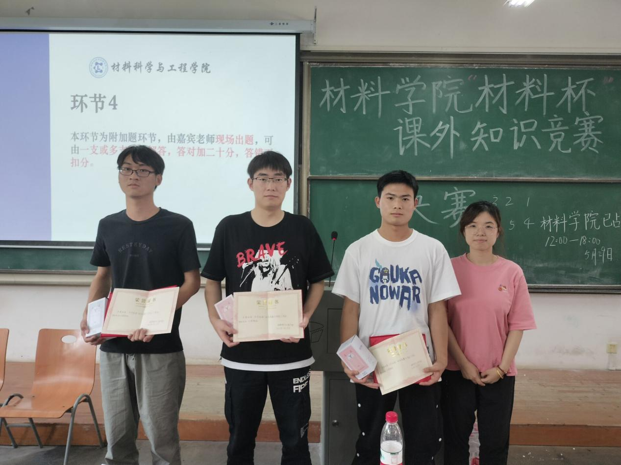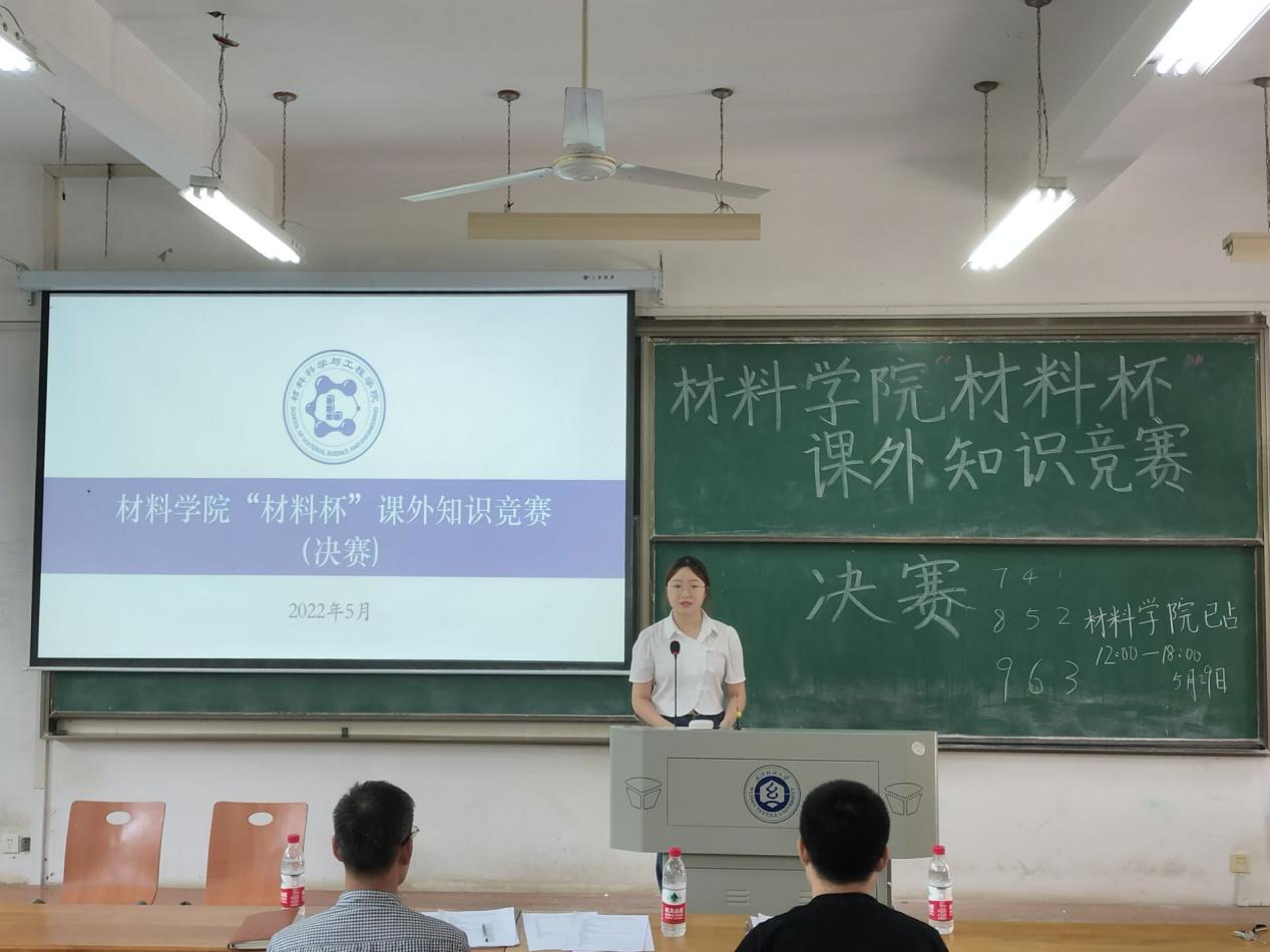 为了丰富同学们的课余生活,营造良好的学术科研氛围,进一步提高学生专业素养,增强团队合作精神和团体凝聚力,英国正版365官方网站举办“材料杯”课外知识竞赛决赛,活动于2022年5月29日下午2点在3-118教室举办。英国正版365官方网站副院长顾绍金教授、材科12001班班主任鲁振坦、英国正版365官方网站辅导员毛成兴老师、曾玉竹老师受邀并出席本次竞赛。