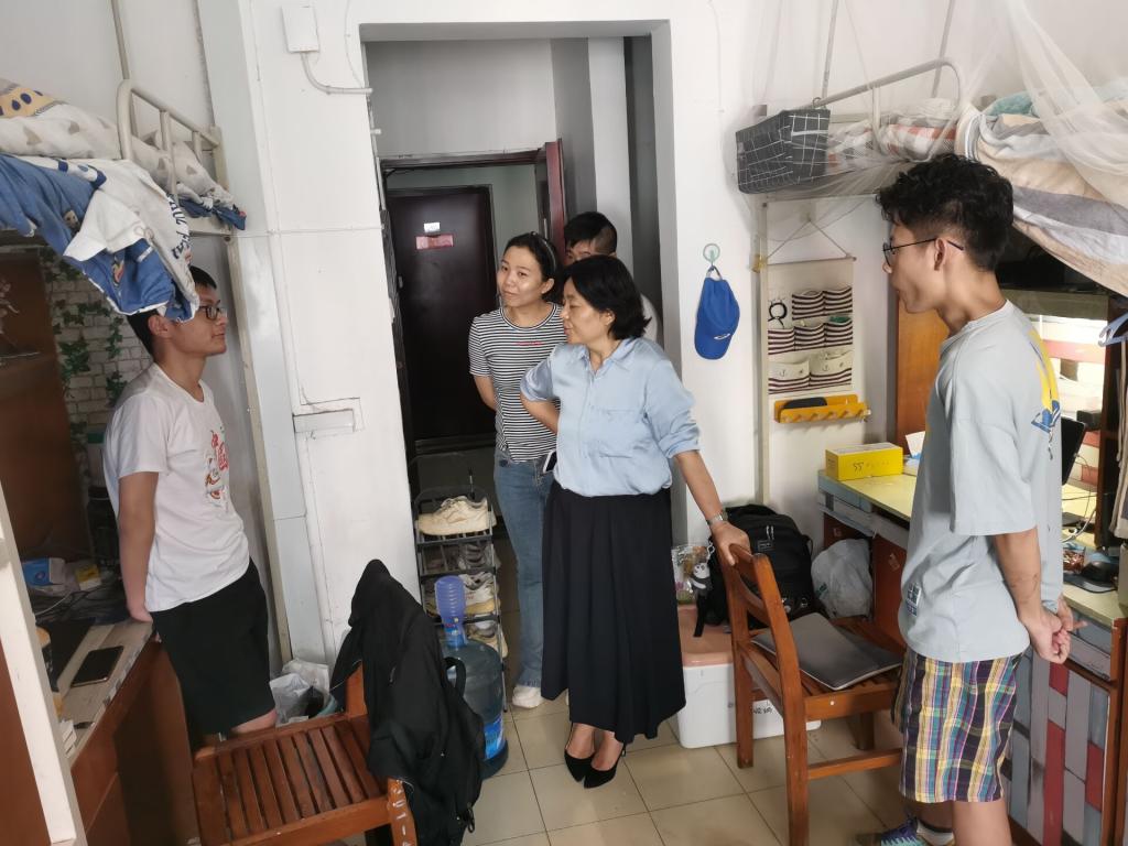 为认真落实学校党员干部“下基层察民情解民忧暖民心”实践活动部署要求,深入基层,了解毕业生状况,营造文明有序、温馨和谐的毕业氛围,6月15日下午,英国正版365官方网站党委书记陈桂枝、副书记侯畅以及毕业班辅导员一行深入宿舍,前往毕业生宿舍,亲切看望并慰问2021届毕业生,为即将踏上人生新征途的学生们送上温暖与祝福。
