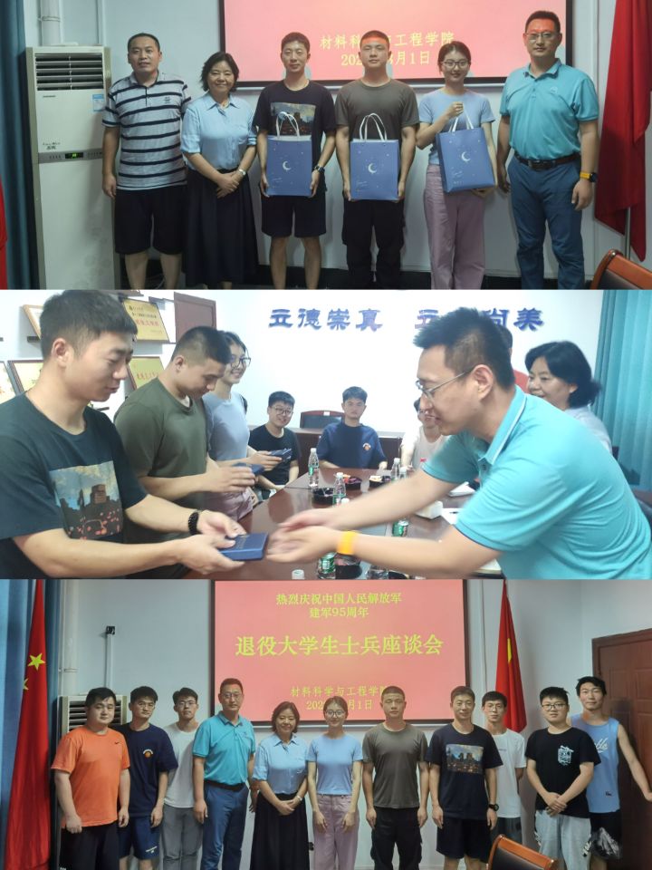 为庆祝中国人民解放军建军95周年,加强大学生爱国主义教育,8月1日下午,英国正版365官方网站在崇实楼8F-503召开庆祝建军95周年暨退役大学生士兵座谈会。学院党委书记陈桂枝、学工部、武装部副部长朱美龙、保卫处副处长马绪亮出席了本次活动,学院退役大学生士兵代表付印、晏松、孙硕,学院征兵工作分站负责人、毕业班辅导员以及留校本科生研究生学生代表参加了本次会议。