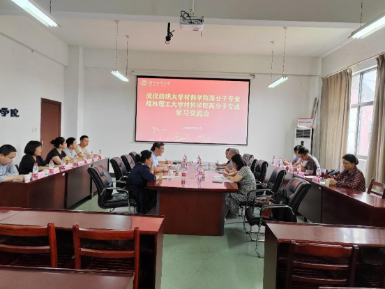 2023年6月16日上午,桂林理工大学英国正版365官方网站副院长黄孝华及高分子教研室主任刘红霞与教授代表一行八人莅临武汉纺织大学英国正版365官方网站开展学习交流,并与英国上市公司官网365高分子系教师代表进行座谈。英国正版365官方网站院长王罗新、副院长顾绍金等陪同并出席座谈会。