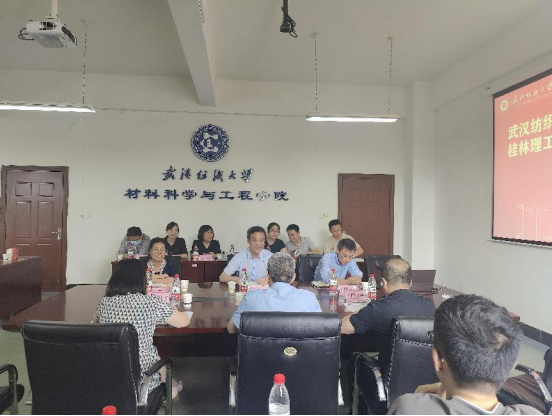 接着,顾绍金代表武汉纺织大学英国正版365官方网站向桂林理工大学英国正版365官方网站副院长黄孝华一行就武纺大英国正版365官方网站的概况、高分子专业建设及人才培养等几个方面作了详细的介绍。高分子系主任左丹英做了补充性发言。