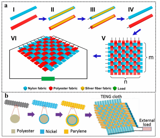 图5 二维-并联电极纤维结构的纺织基摩擦纳米发电机