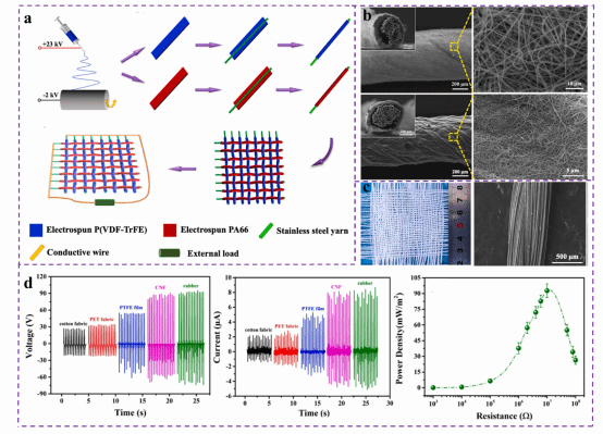 图3 二维-核壳电极结构的纺织基摩擦纳米发电机