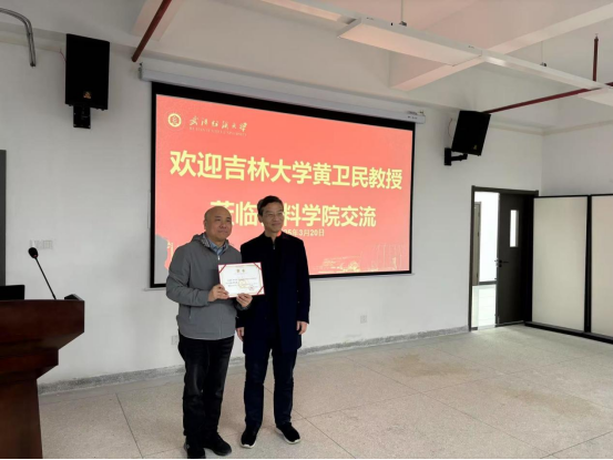 2025 年 3 月 20 日上午 10:00,武汉纺织大学第 770 期阳光论坛暨英国正版365官方网站 2025 年第1期论坛在阳光校区 12-317 会议室举行。本次论坛由英国正版365官方网站与湖北省纺织新材料及其应用重点实验室联合主办,特邀黄卫民教授做报告并聘为英国上市公司官网365客座教授,报告内容 “医美产业玻尿酸生物制造及其创新交联技术” 。