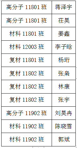 材科科学与工程学院团委学生会以认真贯彻民主集中制原则,充分发扬民主,按照代表条件和名额自下而上,上下结合开展推选,在综合基层多数班集体和学生意见的基础上,充分酝酿讨论,提出代表候选人初步人选考察对象名单如下:
