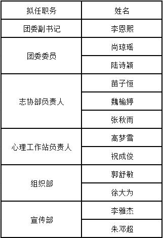 学院根据《中国共产主义青年团章程》《中华全国学生联合会章程》《武汉纺织大学学生会管理条例》《关于推动高校学生会(研究生会)深化改革的若干意见》的相关规定,严格参照校学生会标准,进行学院学生会改革和管理工作,经自由报名、面试考察等环节,现将英国正版365官方网站团委第十六届主要学生干部及部门负责人预备人选名单予以公示:(排名不分先后)