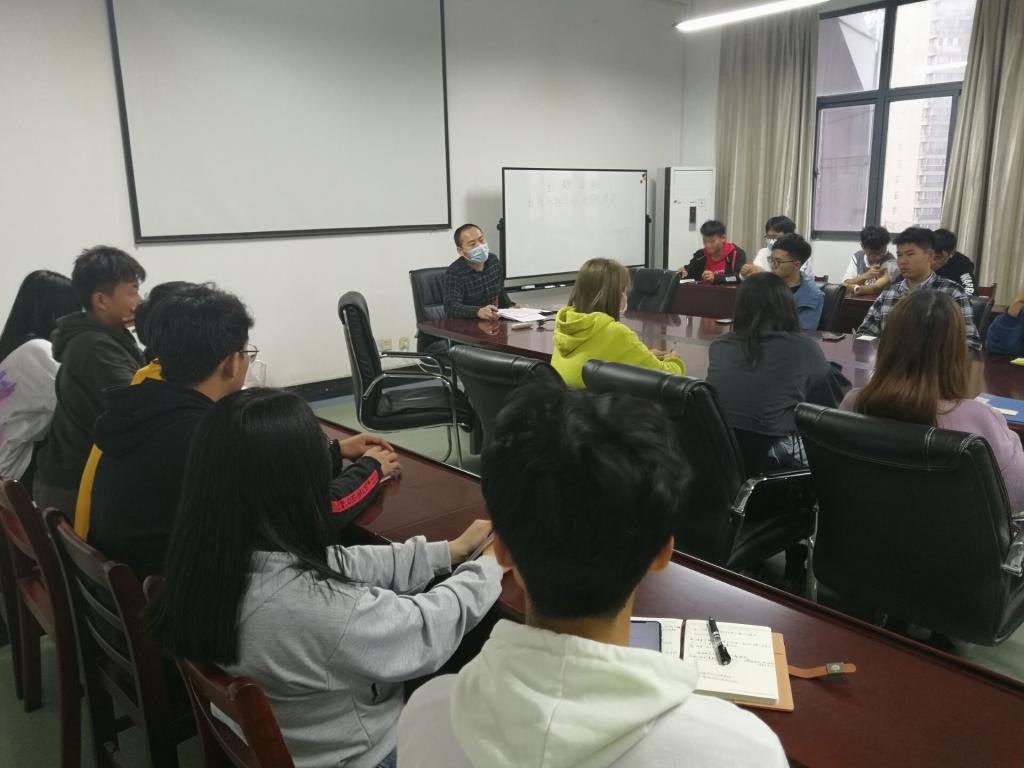 11月14日下午,英国正版365官方网站辅导员毛成兴在8F-506给大一班委上团课,团课主题为“疫情防控”和“班风学风建设”。20级所有班委听取了本次团课。