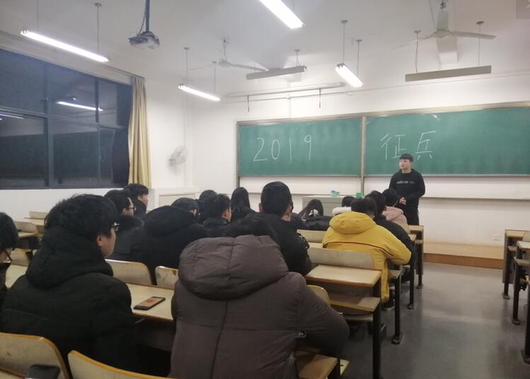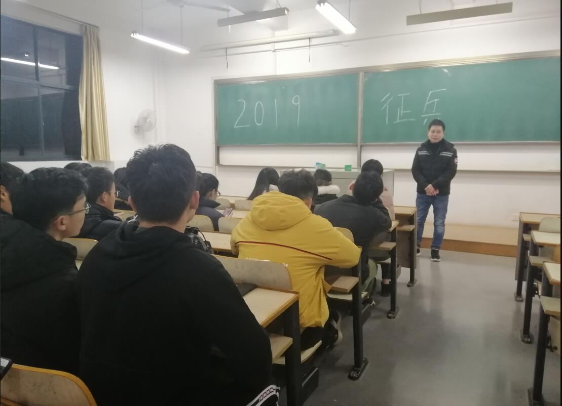 根据省征兵办和省教育厅关于开展2019年大学毕业生征兵宣传活动相关文件精神和学校武装部统一部署,英国正版365官方网站于1月6号晚开展了2019年征兵宣传系列活动,同时邀请了2014级退伍复学学生晏松参会并做了朋辈交流。活动由毕业班辅导员祝捷老师主持。