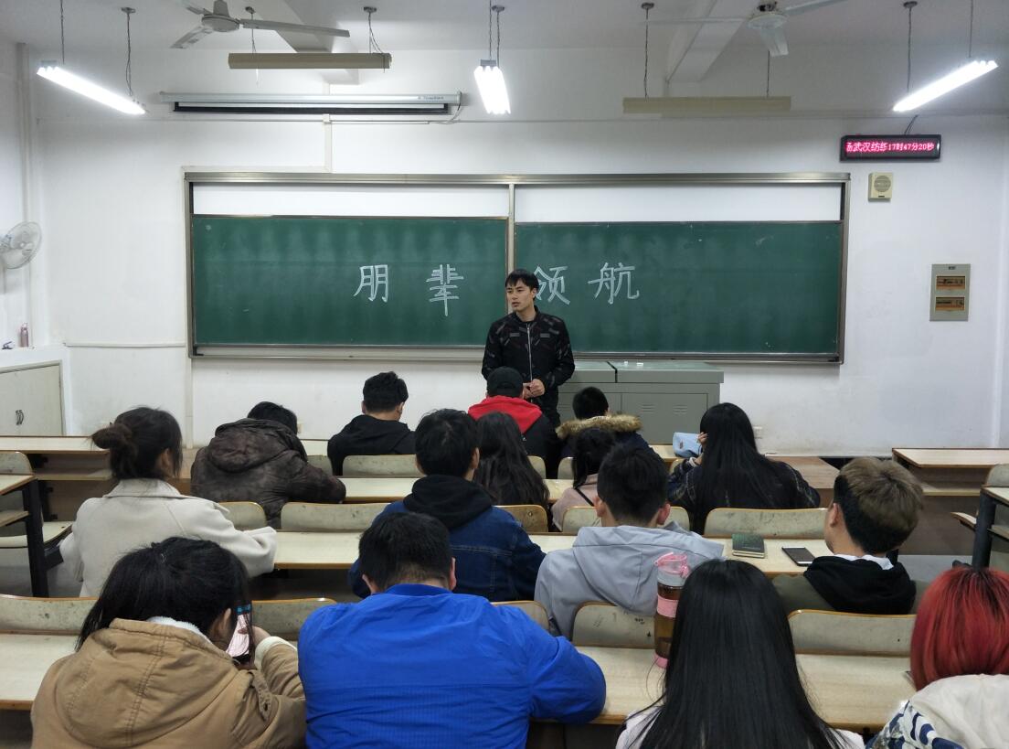 11月18日下午,英国正版365官方网站在03-410举办了“朋辈领航,薪火相传”朋辈领航报告会,本次报告会的主讲人为学院学生会主席刘伟强同学,低年级学生干部们参加了本次会议。
