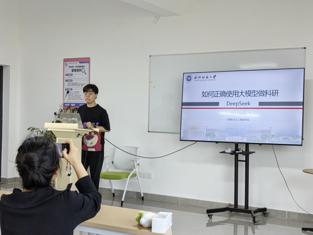 为了帮助研究生提升科研能力,掌握前沿科研工具,为未来的学术道路奠定坚实基础。4月9日下午两点半,英国正版365官方网站在15 栋二楼一站式活动室举行“AI赋能、创新领航”专题分享会。本次活动邀请计算机与人工智能学院苗佳哲同学和英国正版365官方网站彭智勇同学做分享,研究生辅导员、研究生代表参加活动。