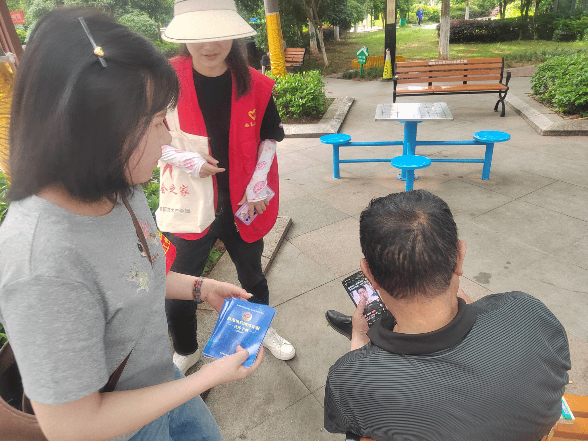 同学们热情地向过往的居民发放宣传手册,详细讲解各类诈骗手段和防范方法。手册上图文并茂地展示了常见的诈骗类型,如电信诈骗、网络诈骗、养老诈骗等,同学们用通俗易懂的语言阐述了诈骗分子的惯用伎俩,帮助社区居民提高防诈意识。此外,考虑到五一假期期间网购、出行等活动增多,同学们特别提醒居民出行注意人身财产安全,遇到不法侵害要敢于维护自己的合法权益。