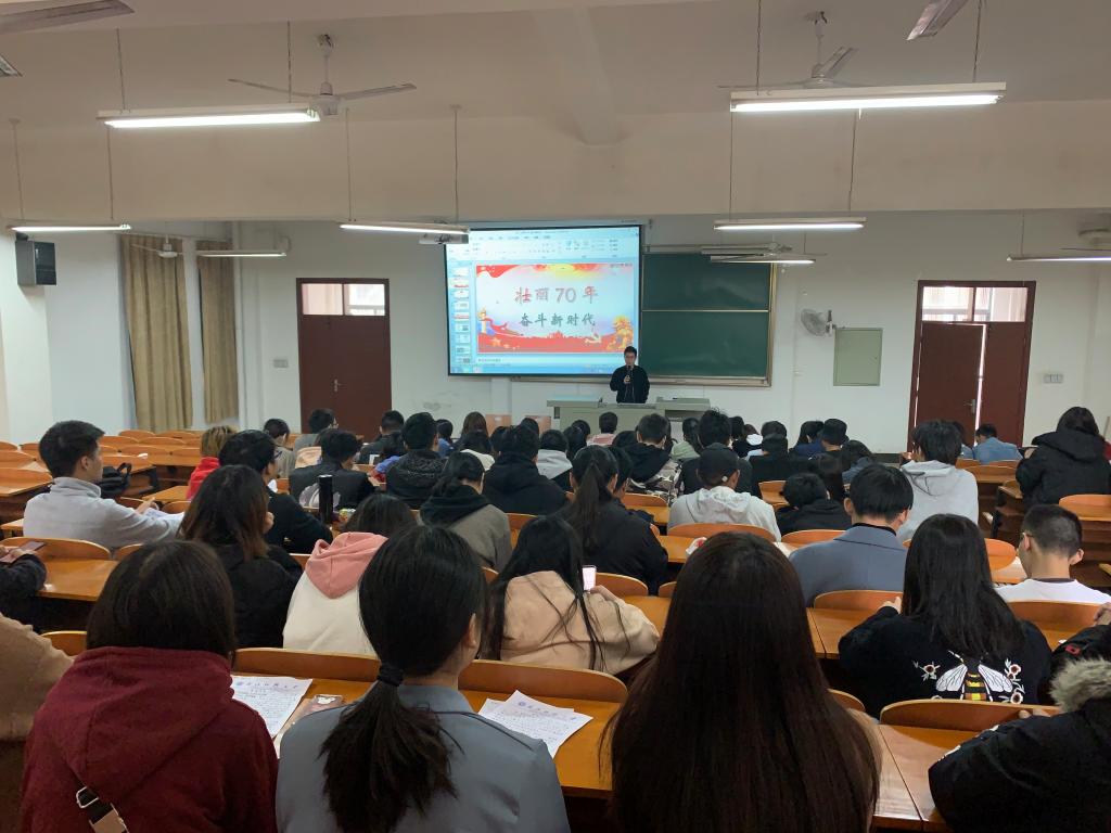 团课第一讲由英国正版365官方网站辅导员祝捷老师主讲,祝老师以“壮丽70年 奋斗新时代”为主题,充分阐释70年的光辉历程、伟大成就、宝贵经验,让学生深入了解一个浴火重生的国家走过的壮丽历程,让学生全面认识昔日国弱民穷的中国发生的历史巨变,激励学生把爱国精神转化为实际行动,为实现“两个一百年”奋斗目标、实现中华民族伟大复兴中国梦而不懈奋斗。
