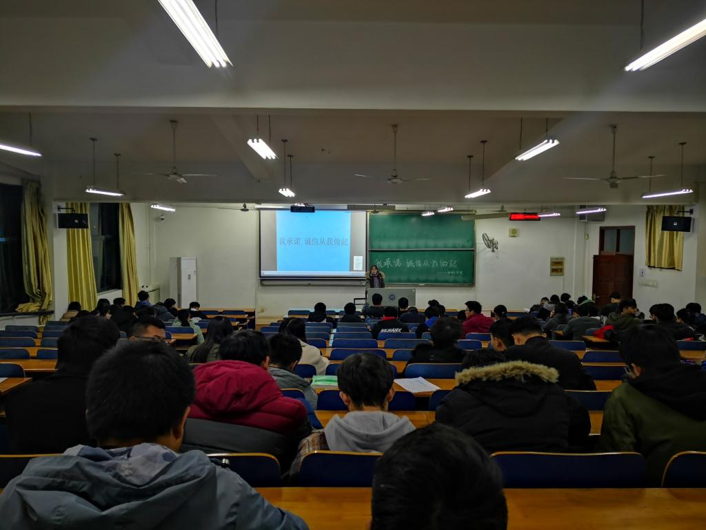 11月24日,英国正版365官方网站利用晚点名时间,组织全院学生开展了“奋斗青春 诚信人生”主题班会。