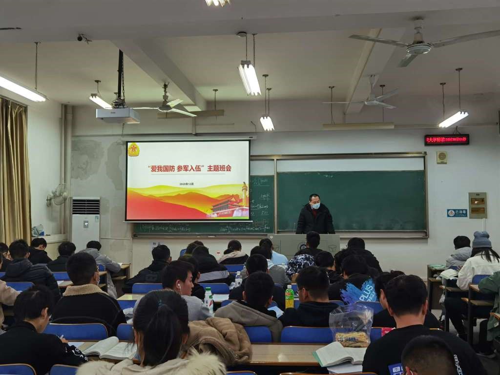 近日,为切实落实好2021年征兵工作、保证宣传效果,英国正版365官方网站征兵工作站负责人、辅导员毛成兴采用政策集中宣讲、退伍大学生士兵交流汇报、班级主题班会的方式,深入细致地开展了征兵宣传工作。