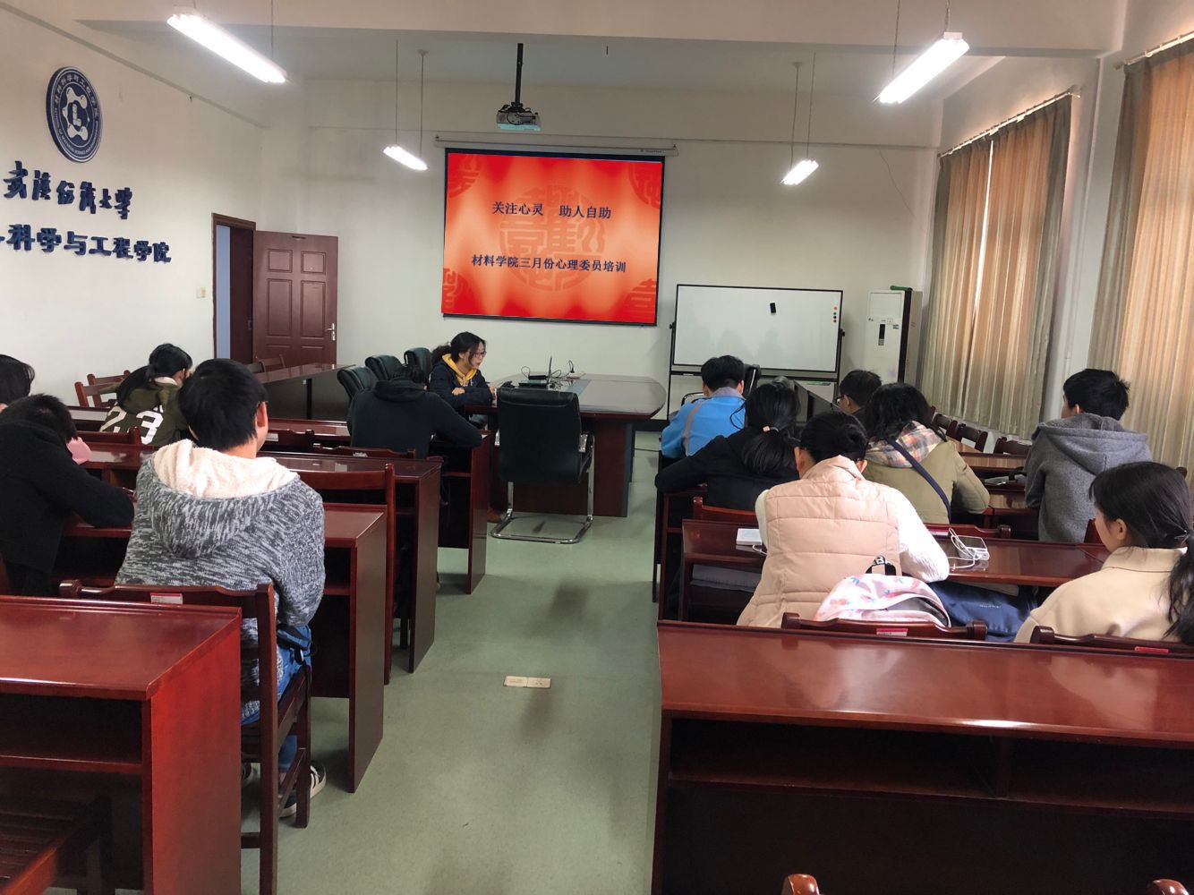 为充分发挥班级心理委员在学院心理健康教育工作中的重要作用,有效推进学院心理健康教育工作的开展,3月14日下午2点,英国正版365官方网站在学院会议室开展了以《关注心灵 助人自助》为主题的心理委员培训。培训主讲人为黄鹤老师,学院全体心理委员参加了此次培训。