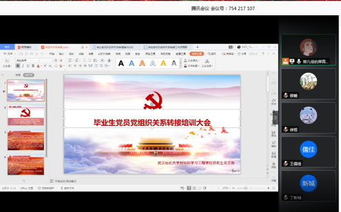 为进一步做好2020届毕业研究生党员教育管理工作,教育引导广大毕业生党员进一步增强“四个意识”、组织观念和纪律观念,切实发挥党员的模范带头作用,5月18日晚,英国正版365官方网站通过腾讯会议在线召开毕业研究生党员离校教育大会,学院党委副书记侯畅、研究生党支部支委及全体毕业生党员参加大会。大会由研究生党支部副书记曾凡佳主持。