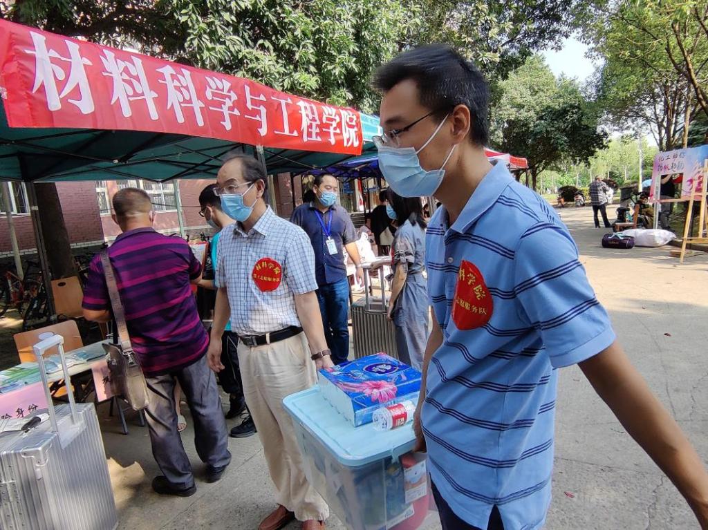 “我是你的对接老师顾老师,把行李给我吧,我送你去报到点报道”。武汉纺织大学英国正版365官方网站材料系主任顾绍金从新生手里接过行李,带着学生走向迎新点,并一路向学生介绍校园环境和开学后的各项活动安排。