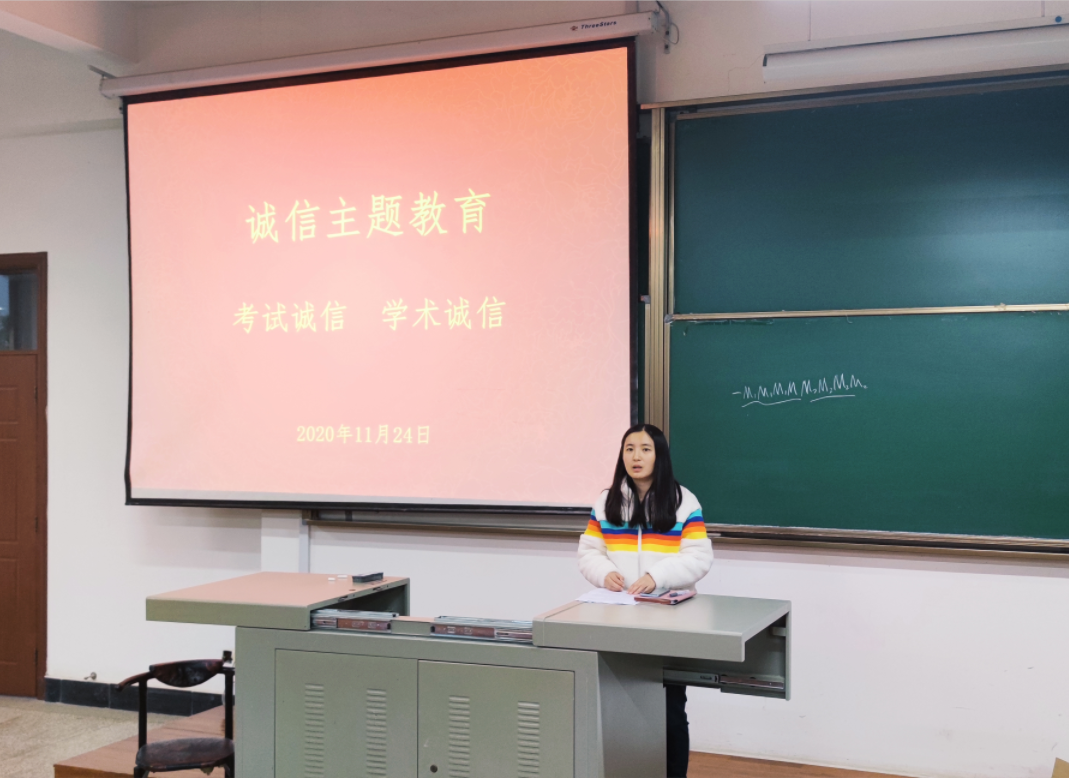 王鑫老师先带领同学们一起学习了校纪校规,然后从考试诚信和学术诚信两方面讲解了诚信的含义。希望同学们在期末考试以及即将到来的全国研究生考试中沉着应对,诚信应考;在毕业设计中遵守学术道德,毕业设计的数据和结论都要有事实依据。