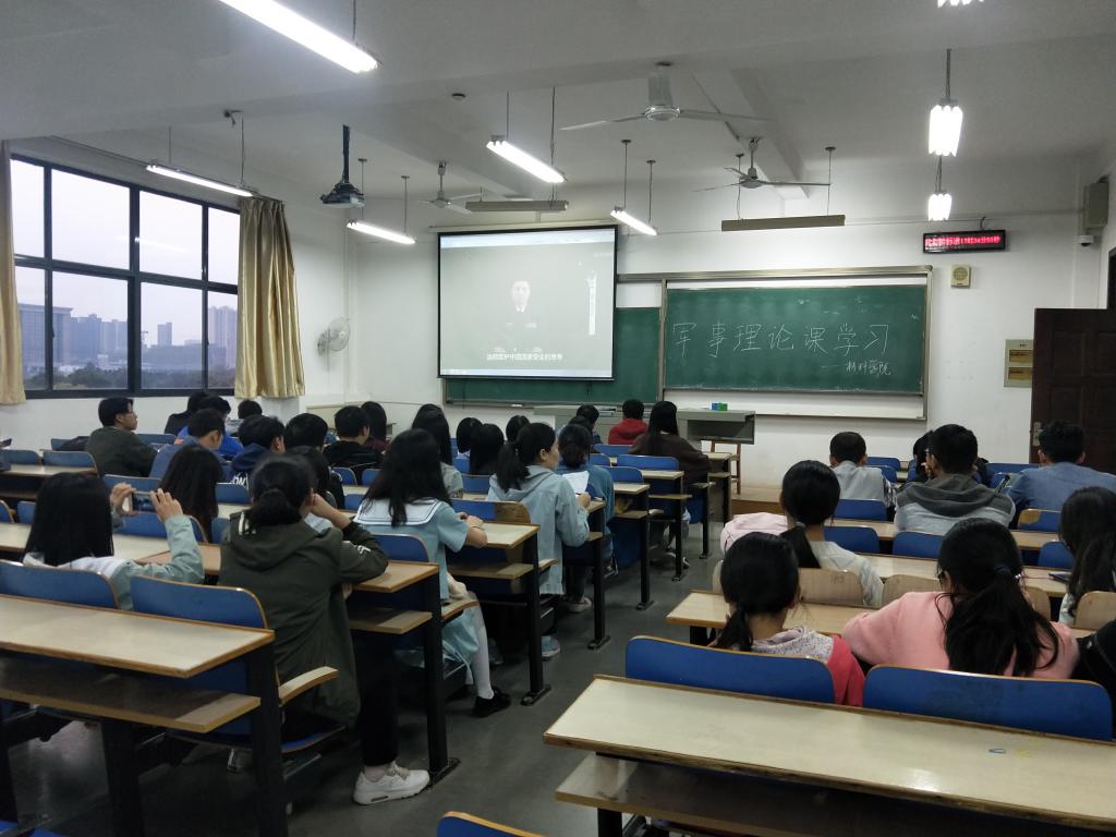 本次军事理论课通过视频进行,在视频播放期间,同学们的注意力高度集中,眼神中充满热情。此视频的主讲者为国防大学的赵毅老师,其为同学们讲解了丰富的军事理论常识,包括我国军事装备情况,解析了我国目前的内忧和外患。辅导员黄鹤老师还表示,随着我国综合国力的不断增强,许多强国对我国产生了敌意,但我国正全力避免因此而产生纠纷与战争。同时其鼓励同学们一定要积极向上,努力学习,艰苦奋斗,自立自强,勇于承担起使国家强大的责任,要从骨子里去爱国,使中国真正的强大起来。