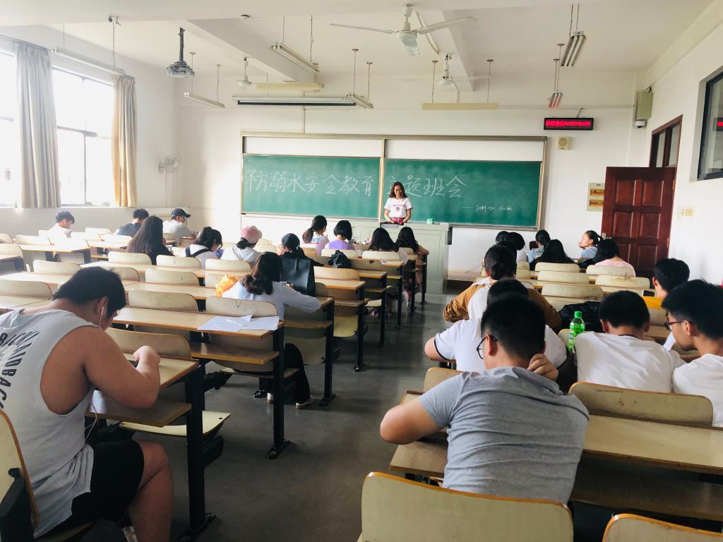 为切实做好学生防溺水工作,有效杜绝溺水事故的发生,英国正版365官方网站根据《省教育厅关于做好大学生防溺水工作的通知》要求,5月26日下午5点,利用晚点名时间在3栋教学楼开展防溺水安全教育主题班会。