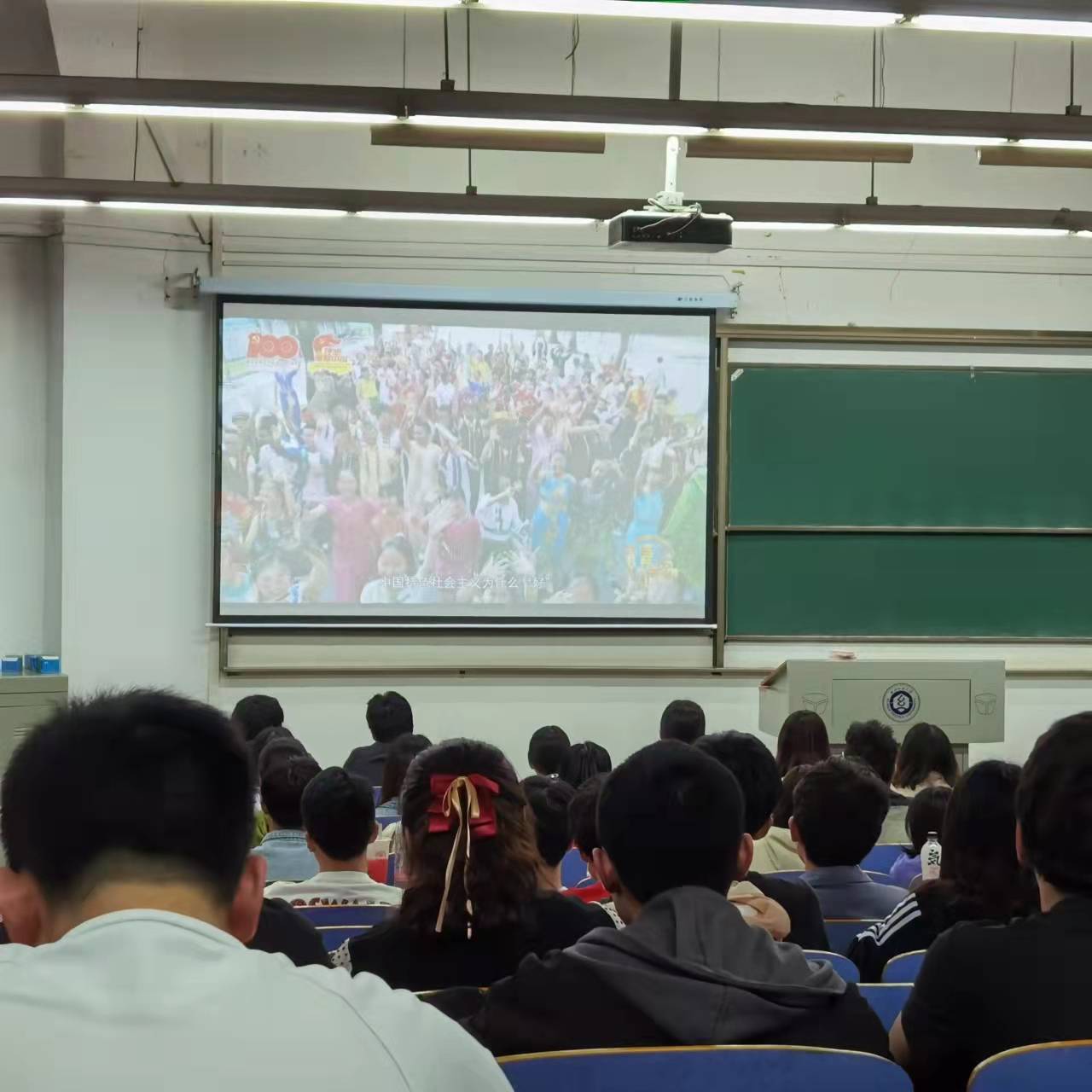 团课伊始,胡老师首先活动开始首先播放了《少年》的MV,全体学生认真观看,鼓励学生担起时代重任,以小我成就大我,在奋斗中彰显青春的底色。随后,通过讲述中国共青团发展的辛路历程,引导学生作为当代的青年要自立自强,在日常的生活、学习中,一是要提高思想素质,二是要注重个人能力的培养。最后,结合学生的现状,引导学生正确的树立就业观、择业观,平衡好考研和就业的关系;鼓励考研学生敢于拼搏、锐意进取、不轻言放弃;引导就业学生积极投身就业市场,不能故步自封、闭门造车,唯有多看、多思、多跑、多分析才能找到合适自己的工作。总之,正如习近平总书记说的那句话“奋斗是青春的底色”,当代青年责任在建、使命在肩,唯有通过不懈奋斗和不懈努力才能画出最绚丽的色彩,才能为社会主义现代化建设贡献出自己的力量。