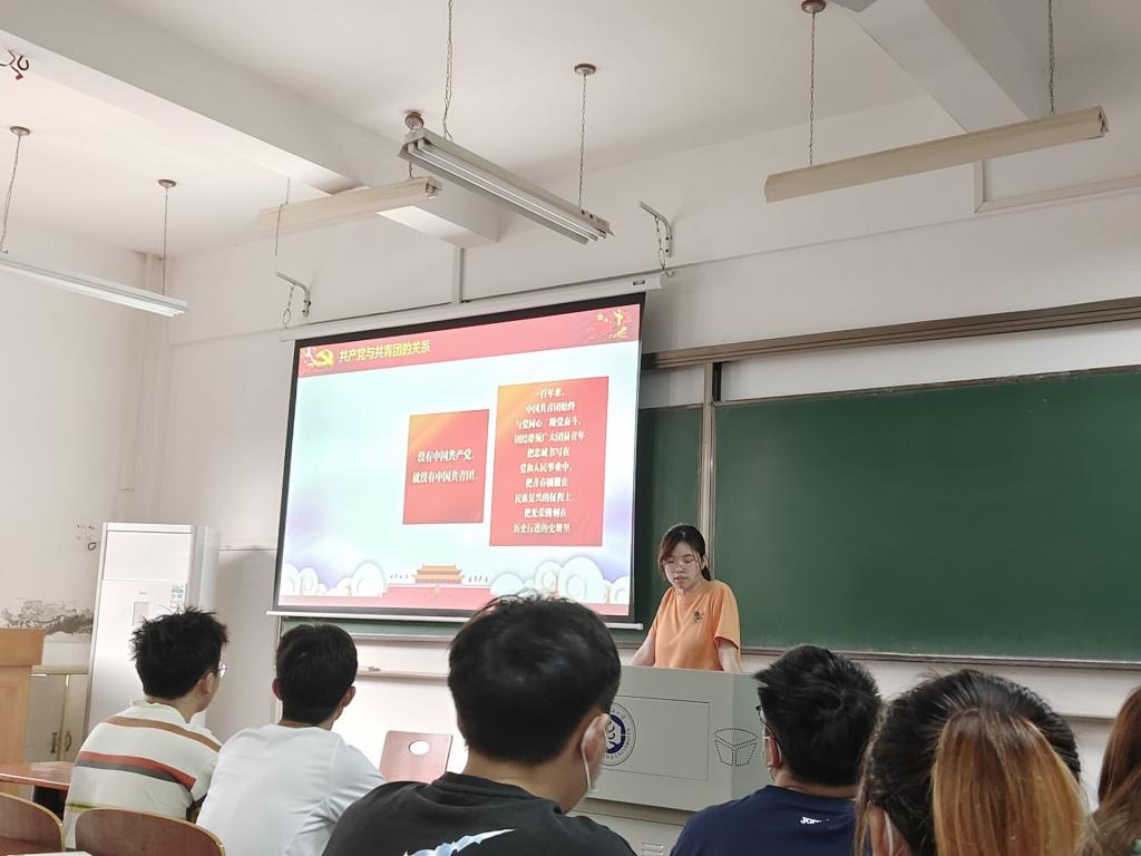 为深入学习贯彻习近平总书记在庆祝中国共产主义青年团成立100周年大会上的重要讲话精神,英国正版365官方网站于5月13日下午在3-112教室开展了题为“青春心向党,百年再启航”的主题团课。团课由英国正版365官方网站团委书记曾玉竹老师主讲,团委学生会全体部门负责人和主席团参加团课学习。