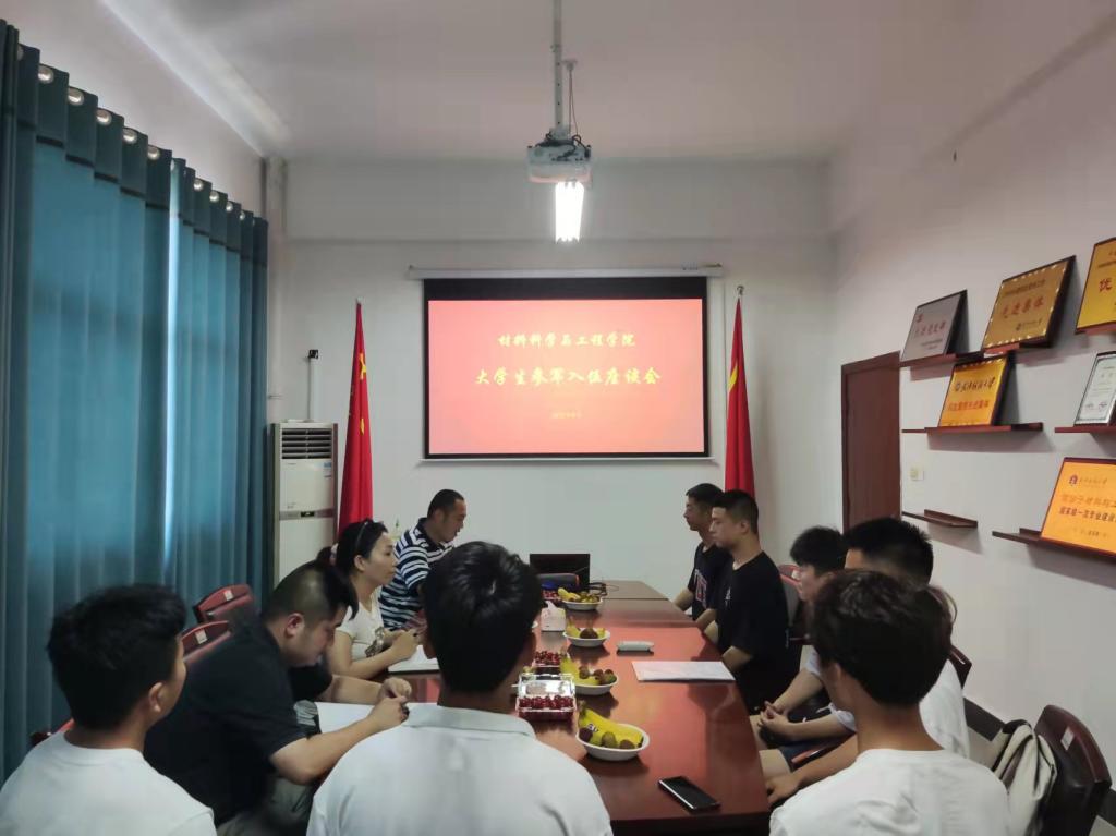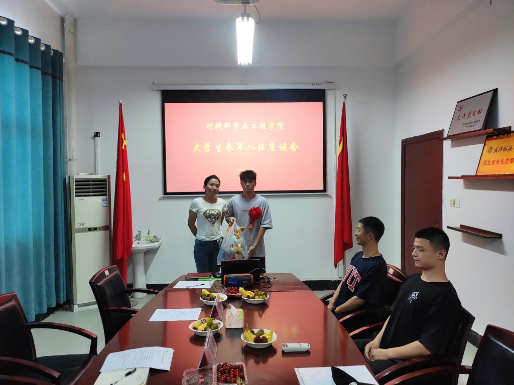 6月17日下午,英国正版365官方网站召开大学生参军入伍座谈会暨2018级毕业生韦增翔“携笔从戎 参军报国”欢送会。学院党委副书记侯畅参加会议并发言,会议由学院征兵工作分站负责人、辅导员毛成兴主持,毕业年级辅导员胡晓、参军入伍毕业生韦增翔、退役大学生士兵代表、低年级意向参军学生近20人参加了本次会议。