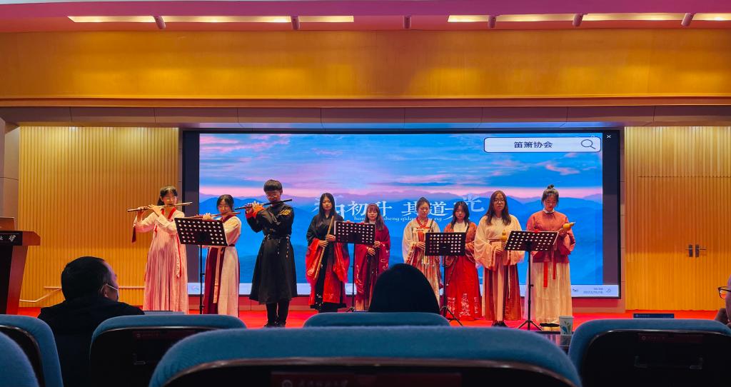 11月15日,学校举办2021-2022学年学生社团星级评定”答辩活动,笛箫协会参加答辩,社团指导老师曾玉竹与部分社团骨干成员参加答辩。