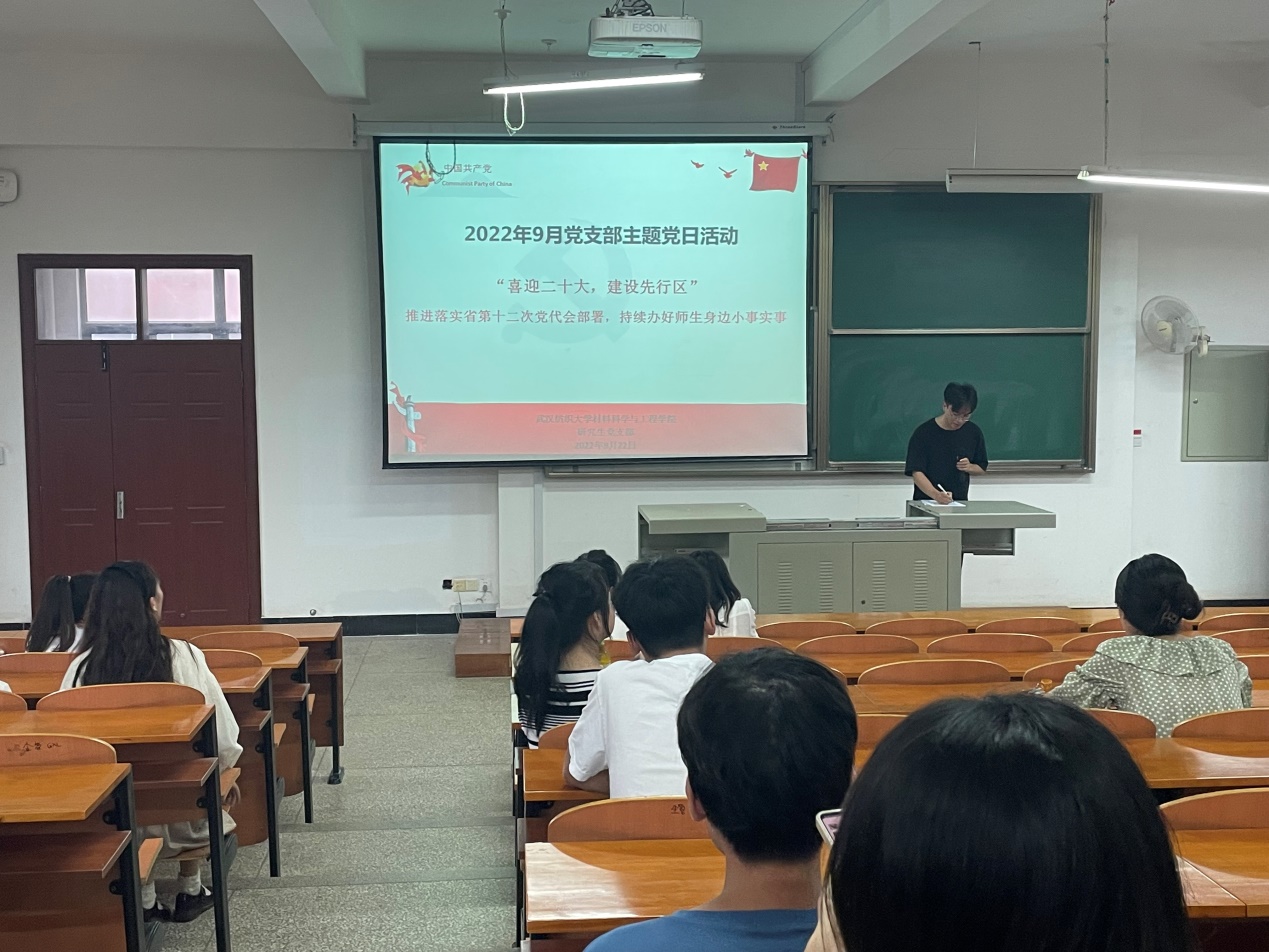 为认真学习宣传贯彻湖北省第十二次党代会精神,凝聚团结奋进的思想基础,切实把党代会精神转化为干事创业的强大动力。9月22日,英国上市公司官网365研究生党支部开展“学习宣传贯彻党代会精神,争做先行区建设的先行者”主题党日活动,本次活动由英国上市公司官网365研究生学生党支部支委陈秋穗主持,支部全体党员、积极分子参加活动。