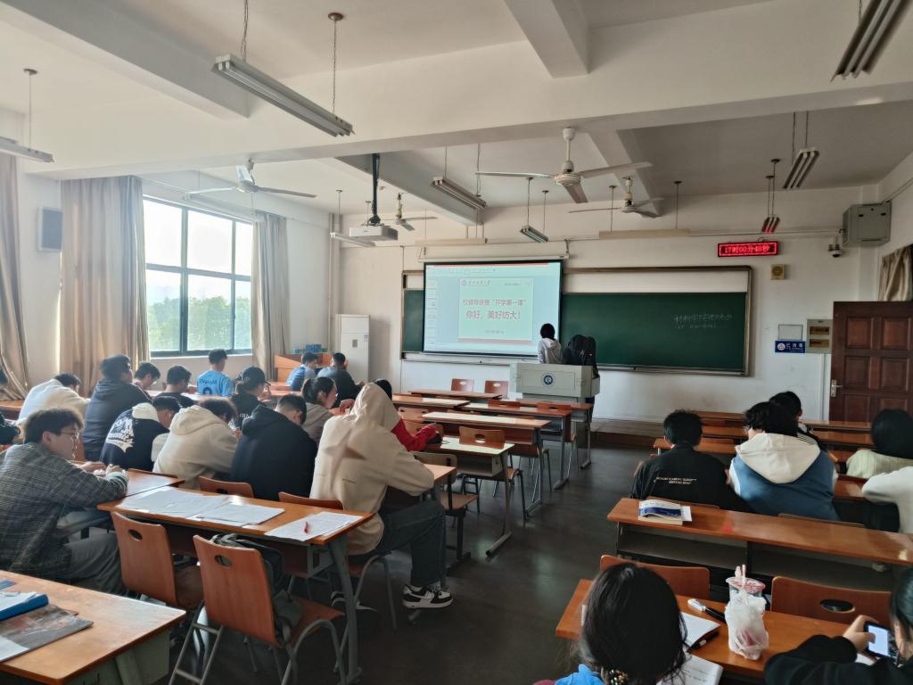 主题班会上,班主任和辅导员老师与学生一起学习了校领导讲授的“开学第一课”,校党委书记田辉玉勉励退役大学生士兵永葆军人优先作风、争做时代的奋进者,要树立远大理想信念、珍惜时光不断进取、积极参加各类实践活动;校长徐卫林勉励青年学生要培养兴趣爱好、践行智慧学习,做人做事都要有韧性。学习了校领导的“开学第一课”,同学们纷纷表示会追求自己的理想,做有目标肯奋斗的新时代青年。