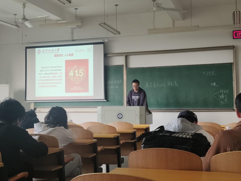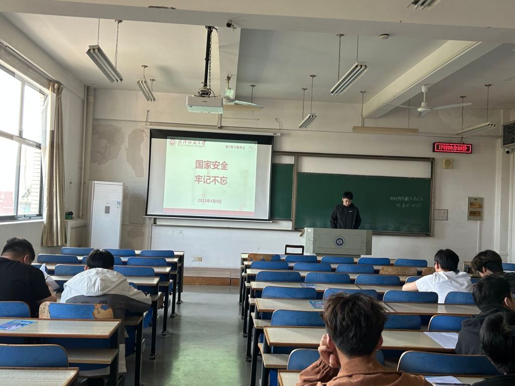 4月9日,英国正版365官方网站在3号教学楼组织开展了“国家安全 牢记不忘”主题班会,号召同学们在我国第八个全民国家安全教育日到来之际,贯彻总体国家安全观,不断增强国家安全意识和素养。学院副书记、辅导员和班主任老师参加了晚点名班会。