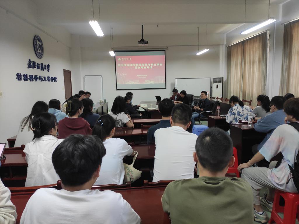 5月8日下午,英国正版365官方网站在8F506会议室组织开展本科生论坛暨朋辈领航考研分享会,学院党委书记陈桂枝、副院长刘欣、党委副书记魏剑,专业教师、班主任、辅导员、优秀考研学生代表以及复材专业大三学生参加了本次考研分享会。