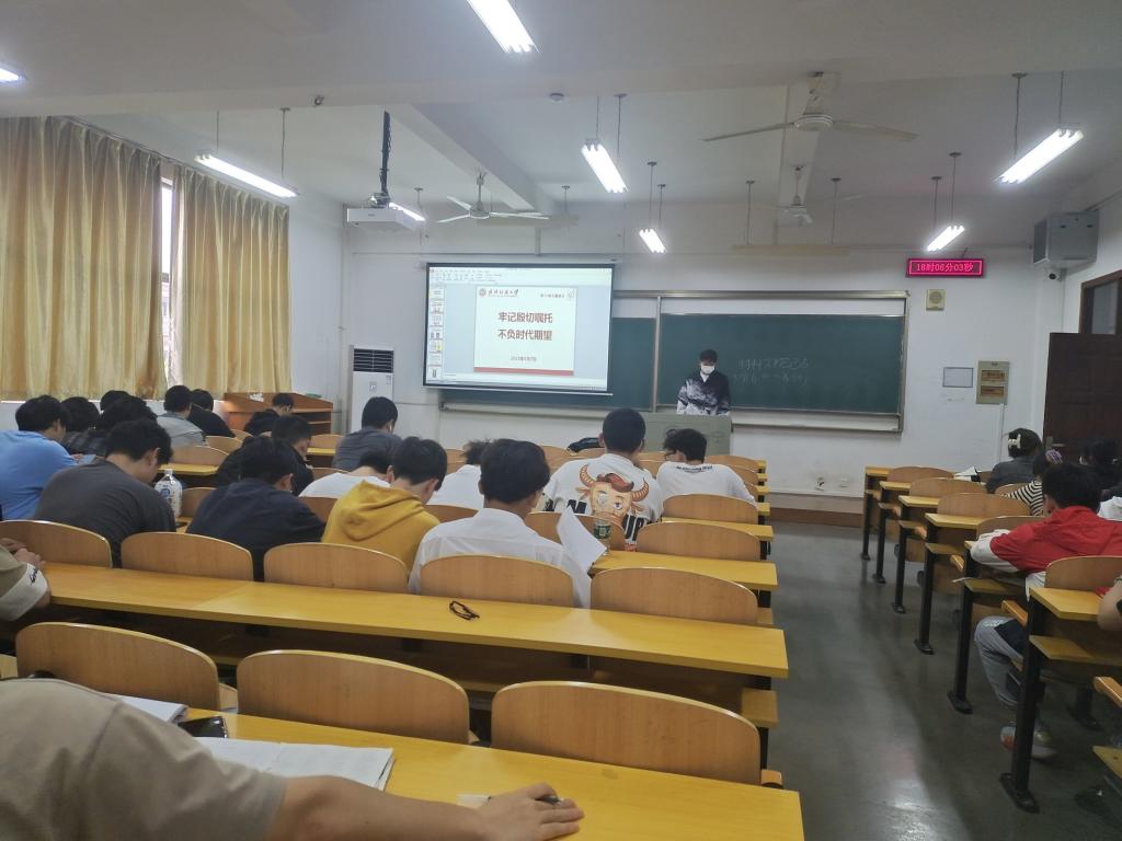 5月7日晚,英国正版365官方网站在3号教学楼组织开展了第13周主题班会,班会分“牢记殷切嘱托 不负时代期望”“健康防护”“防范电信网络诈骗”“井冈山精神代代传”等。学院副书记、辅导员和班主任老师参加了晚点名班会。