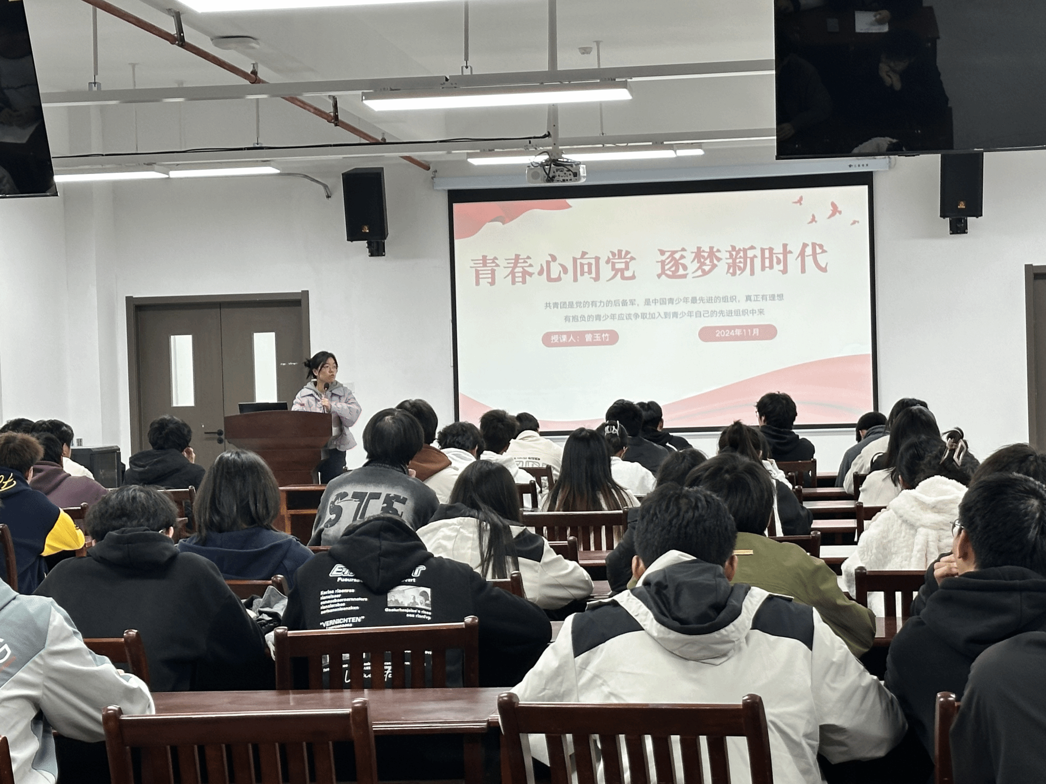 11月17日下午,英国正版365官方网站在12栋教学楼317举行2024年入团积极分子团课培训第一讲,辅导员曾玉竹以“青春心向党,逐梦新时代”为主题为全体入党积极分子授课。