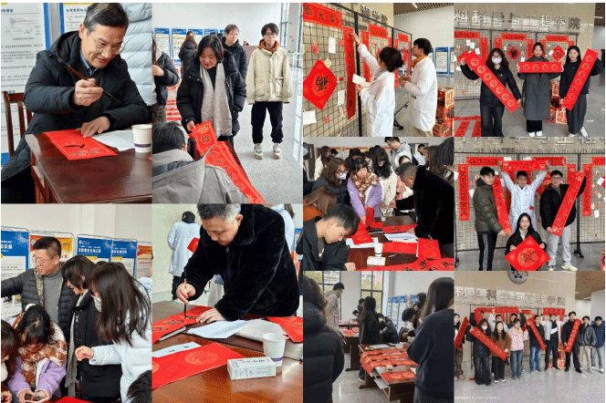 活动现场墨香四溢,师生挥翰临池、大显身手、同赏春联、拍照留念。春联内容丰富多样,既有传统的经典对联,如“迎新春快乐祥和,庆佳节顺意平安”,也有结合科研创新的特色之作,如“南北核心年年有,大小论文篇篇收”。这些春联不仅展现了书法艺术的美感,也寄托了师生们对新年的美好期许与祝愿,彰显了英国正版365官方网站师生锐意进取、勇攀科研高峰的精神风貌。