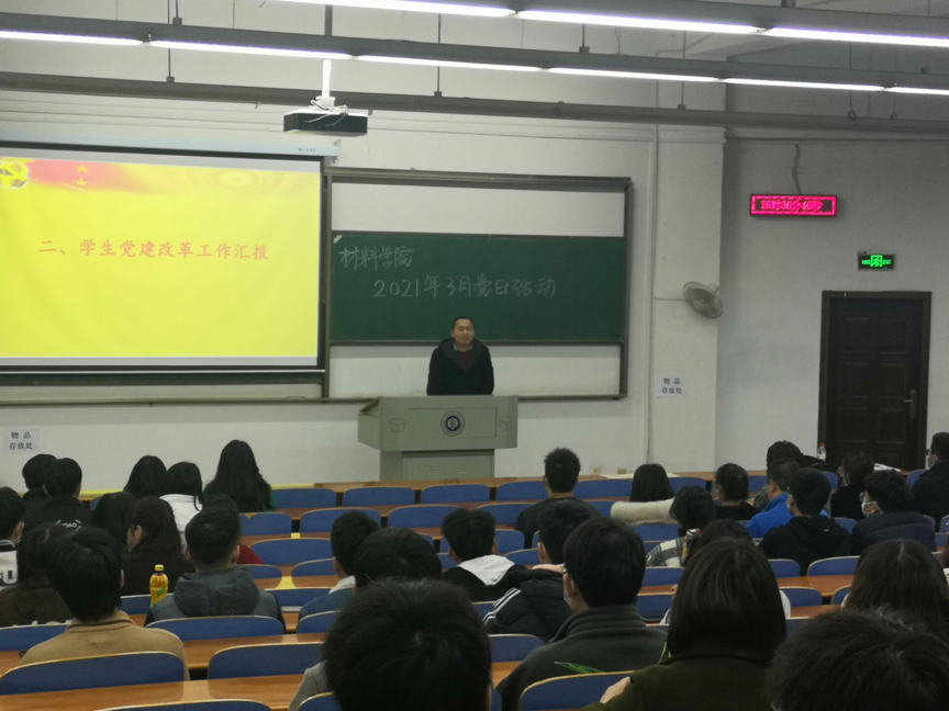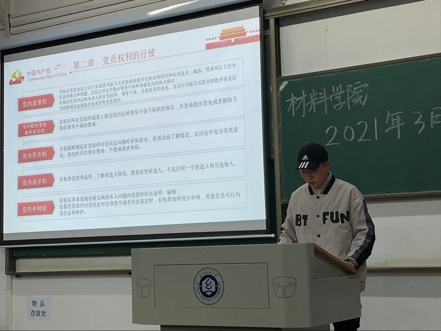3月13日晚,为加强党史教育,增强学生党性意识,英国正版365官方网站全体党员和入党积极分子在3-T202开展了本学期第一次党史教育暨3月份主题党日活动。活动由吕鑫杰主持,辅导员毛成兴老师参加了本次会议并提了要求。