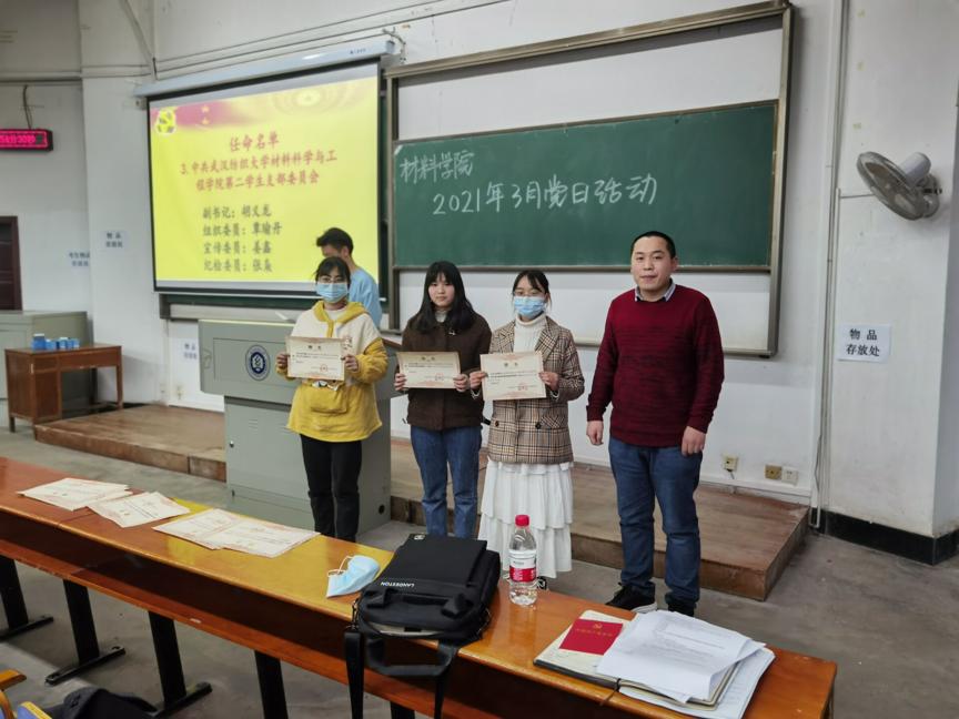 会上,毛老师就学院学生党建工作改革工作做了汇报,对改革的背景和目的、机构设置、制度保障等作了解读,同时重点强调了“三会一课”“主题党日活动”“党员教育”等活动开展的重要性和意义,并要求所有同志主动学习和分享所学、所思、所感,将党史学习与服务实践结合起来。接着,毛老师为新任命的学生党员干部颁发了聘书,明确了责任和义务,鼓励他们努力完成组织安排的各项工作,为学院学生党建工作做出贡献。